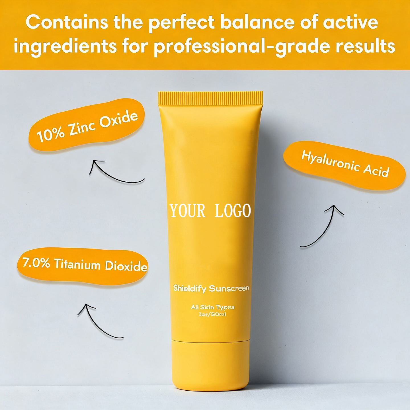 Zinc Oxide + Titanium Dioxide, no chemicals/alcohol/fragrance, pH5.5, light coverage & brightening. For sensitive skin/post-procedure/pregnant women. Custom: adjust sunscreen particles (less whitening), add Ceramide, pump bottle, supports “sunscreen + primer” 2-in-1.
